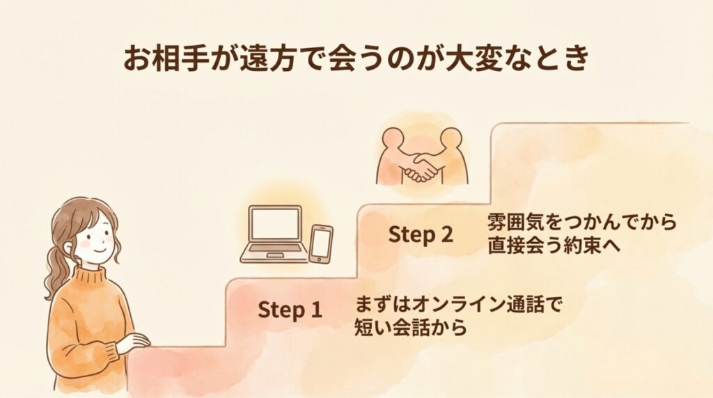 | お相手が遠方在住、会うハードルを感じる | オンライン通話を使う |