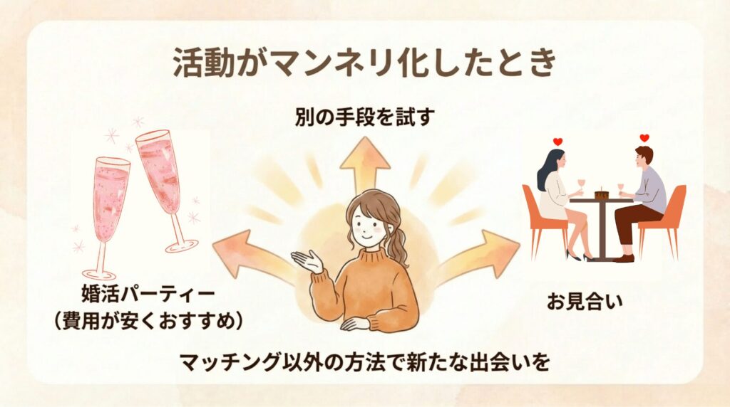 | 余力があるなら | 自分磨きや友人に会うなど婚活以外のことをする |
