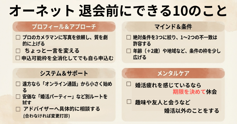 まとめ:オーネットでできることはある!2〜3年続けて結果が出ないなら別の結婚相談所を検討しよう