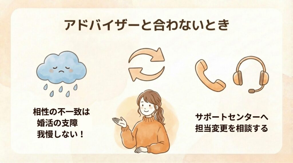 | アドバイザーが合わない | 担当を変えられるか問い合わせする |