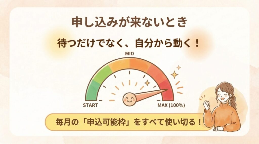 | 「お話しましょう」申込が来ない or 少ない | 申込可能人数枠の全てを使って自分から申込む |