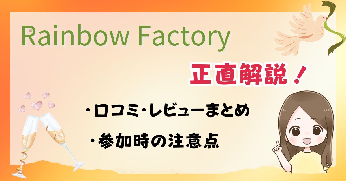 この記事ではレインボーファクトリーのリアルな口コミ・レビューと参加前に知りたい注意点について紹介します。